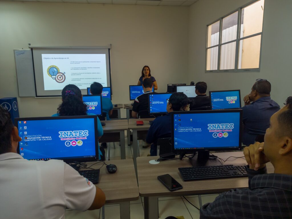 María Esmeralda Aguilar, subdirectora de formación profesional del INATEC, explicó que el programa abarca una variedad de áreas clave, como herramientas didácticas en inteligencia artificial, competencias emocionales, y el fortalecimiento de la cadena de valor, con un enfoque particular en la manufactura y la agrotransformación.