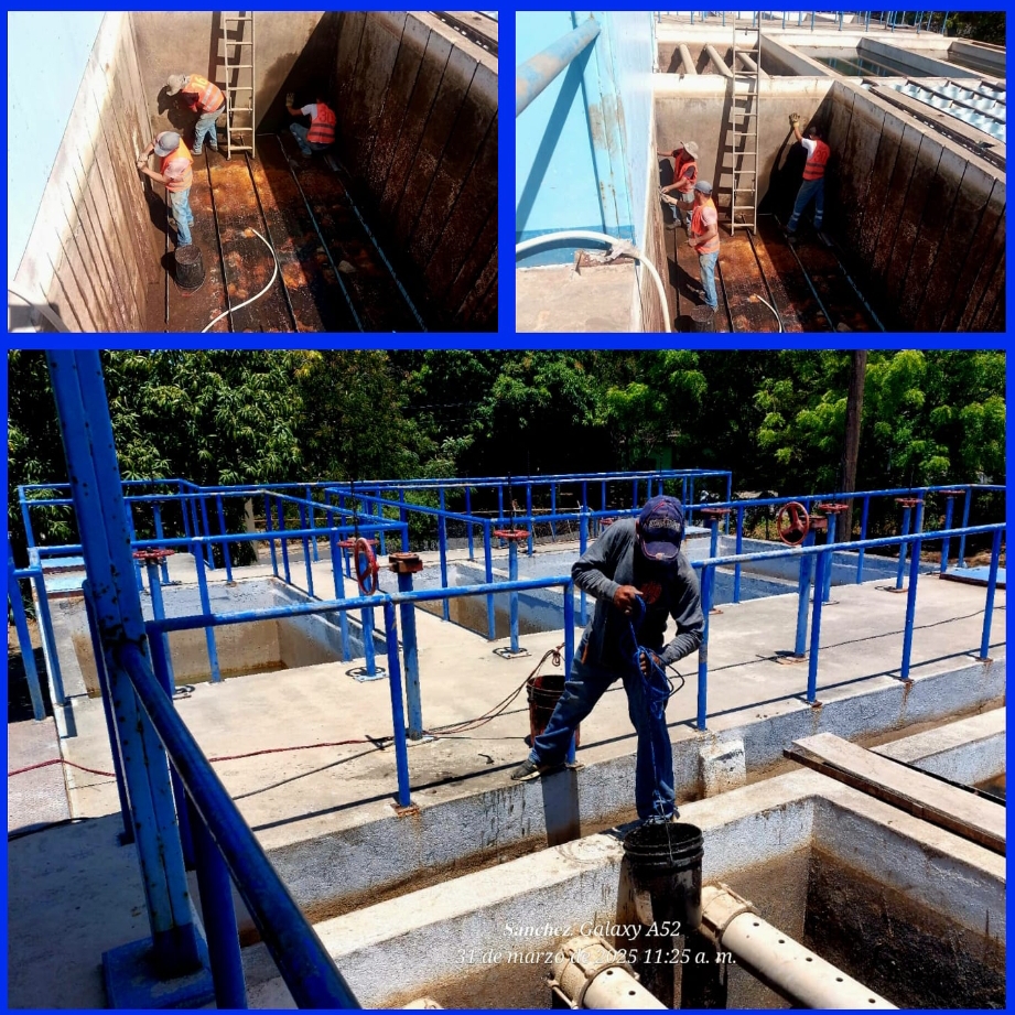 Con el objetivo de mejorar el servicio a unas 3,800 familias de esta ciudad, se realizarán, entre otras, las siguientes acciones: Desinstalación, limpieza e instalación de láminas de unidades de floculación y sedimentación; Limpieza y pintura de paredes y la instalación de soportes metálicos en unidades de floculación.