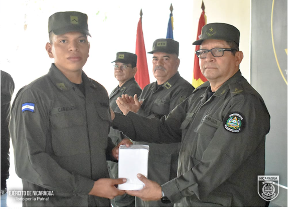 En representación del Comandante en Jefe de las Fuerzas Militares del Ejército de Nicaragua, General de Ejército Julio César Avilés Castillo, presidió la ceremonia el segundo jefe de la Dirección de Doctrina y Enseñanza, General de Brigada Álvaro Francisco Rivas Castillo, acompañado por el jefe del Cuerpo de Ingenieros, “General de Brigada Miguel Ángel Ortez”, Coronel Ing. DEM Omar Joaquín Montenegro Martínez; el director de la Escuela Nacional de Sargentos “Sargento Andrés Castro”, Coronel Eligio Porfirio Calero Jarquín; el jefe de Estado Mayor del Cuerpo de Ingenieros “General de Brigada Miguel Ángel Ortez”, el Teniente Coronel, Ing. DEM Carlos Adolfo Zamora Castro y el subdirector del Centro Internacional de Desminado Humanitario Amistad Nicaragua-Rusia (CIDH-ANR), Teniente Coronel Ing.DEM Nelson Gómez López.