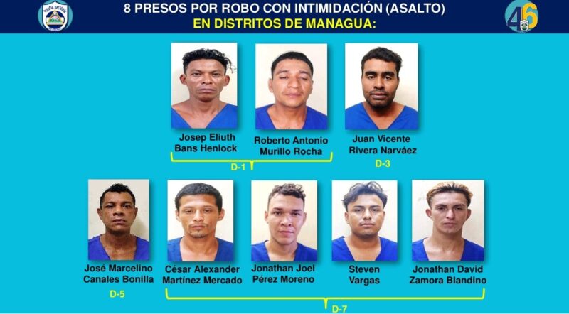 En paralelo, se ejecutaron operativos en Managua, Chinandega, Jinotega y Matagalpa, logrando la captura de 17 individuos señalados por robo con intimidación (asalto).