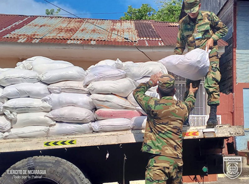 El Ejército de Nicaragua consecuente con el lema de que “Somos el Pueblo mismo uniformado trabajando en su propio beneficio”, el 7 de abril de 2025, a través del Destacamento Militar Sur, en coordinación con la alcaldía municipal de San Carlos, departamento de Río San Juan, realizó el descargue de 839 paquetes alimenticios en el auditorio “Gabriel Aguirre Marín” de la secretaría municipal, con el fin de abastecer a familias en emergencia social.