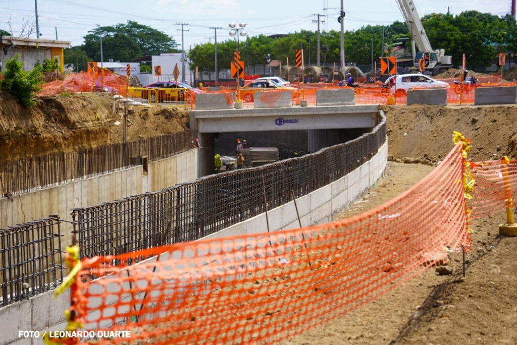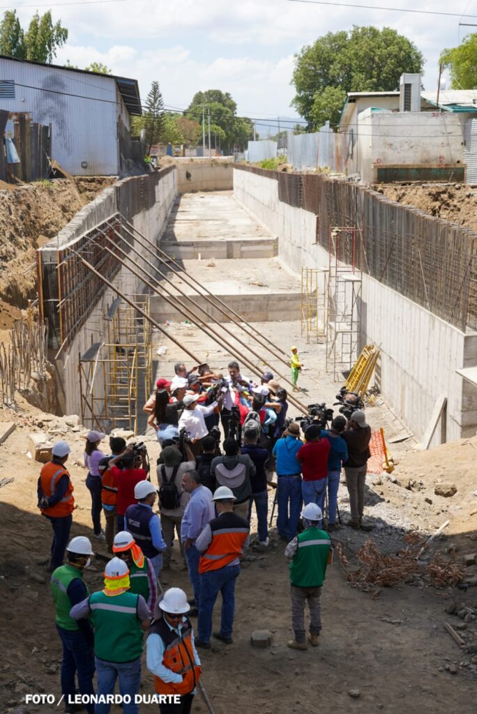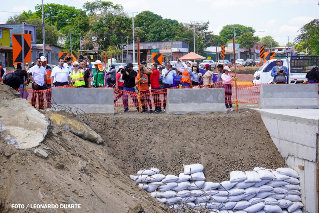 Durante el recorrido, Moreno detalló que en el extremo norte, en la intersección con la Carretera Norte, se están construyendo dos pasos a desnivel. El tráfico este-oeste circulará por un viaducto elevado, mientras que el acceso a la pista se dará por debajo de ambos puentes. En esa zona también se trabaja sobre el Cauce Oriental, el más grande de Managua, históricamente asociado a problemas de inundaciones y accidentes.