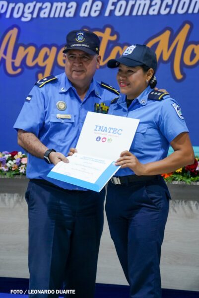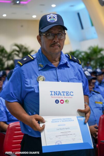 El Comisionado General Aldo Martín Sáenz Ulloa, subdirector de la Policía Nacional, subrayó la importancia de estos cursos, que se desarrollan en coordinación con el INATEC y agradeció el apoyo brindado por el gobierno del Copresidente Daniel Ortega y la Copresidenta compañera Rosario Murillo.