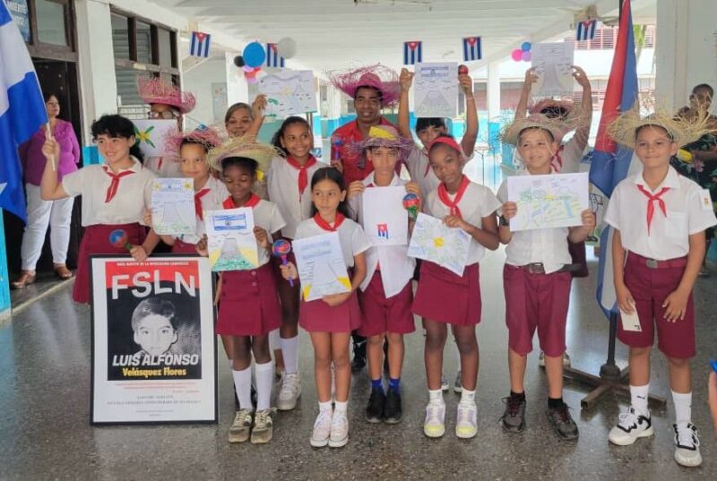 La Escuela Primaria “Niños Héroes de Nicaragua” de la Habana y la Embajada de Nicaragua en Cuba, conmemoraron el Día de la Dignidad Nacional, el Natalicio del General Augusto C Sandino y la inmensa latitud del Heroísmo de Luis Alfonso Velásquez Flores “El Grillo” que cambió rondas infantiles por la lucha, uniéndose al inmortal Coro de Ángeles que cantan a Sandino en mil batallas, un 2 de Mayo de 1979.
