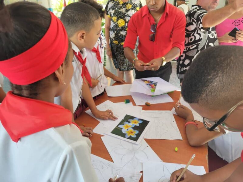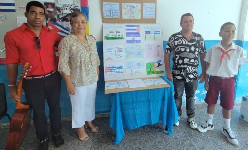 Asimismo, los Estudiantes de la Escuela elaboraron un mural de bienvenida y dibujaron nuestros volcanes y nuestra Flor de Sacuanjoche, como una muestra de la Amistad, Cariño y Solidaridad entre los Pueblos de Nicaragua y Cuba.