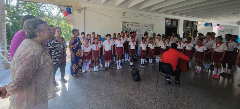 Un coro de pequeñitos recibieron a la Embajadora nicaragüense, Compañera Guisell Morales Echaverry, con cantos revolucionarios dedicados a Cuba y Nicaragua y con el Himno de la Escuela que recuerda a los Niños Héroes “que con su Sangre
