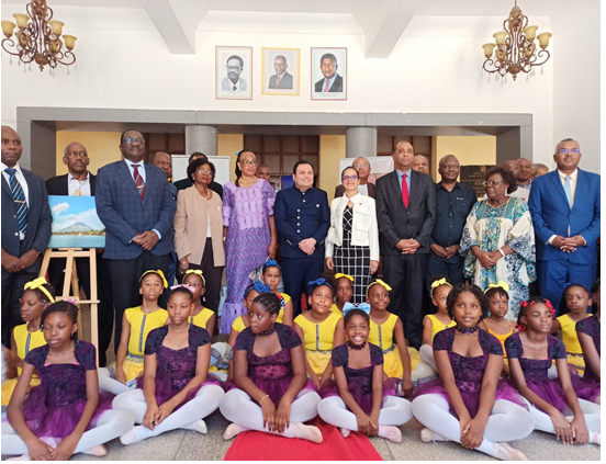 miembros del Gabinete de Gobierno, combatientes históricos de la Batalla de Cuito Cuanavale, Comunidad nicaragüense residente, invitados especiales y estudiantes del Colegio Real Siglo 21 de Luanda, quienes deleitaron a los asistentes con danzas contemporáneas dedicadas al General Sandino.