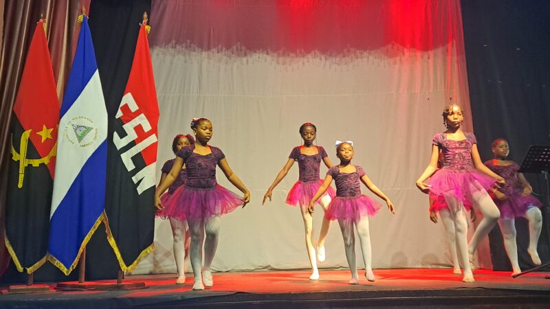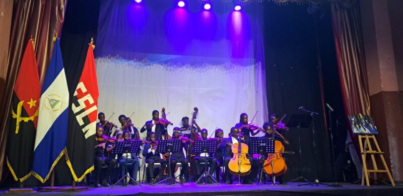 Los presentes pudieron disfrutar y compartir de cantos dedicados al General de Hombres y Mujeres Libres Augusto C. Sandino, entre ellos “La Flor de Pino”, “Minga Rosa Pineda”, temas interpretados por la Orquesta Sinfónica Camunga de Luanda.