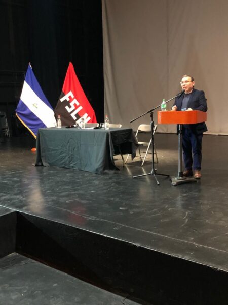 De parte de nuestra Nicaragua, nuestro Jefe de Misión y Ministro Asesor de nuestra Presidencia, Compañero Carlos Midence, al momento de tomar la palabra, trasladó el fraternal saludo y abrazo de nuestro Buen Gobierno Sandinista y Pueblo. Asimismo, brindó una charla sobre el Pensamiento, la Gesta Histórica y el Legado infinito de nuestro General Sandino: sus ideales, batallas y propuestas de acciones políticas que concibió mediante cartas, manifiestos, escritos reflexivos, a lo largo de los combates contra los marines hasta conseguir expulsarlos de nuestro suelo patrio. De igual manera, expresó que esos principios y propuestas, pensadas al fragor de la Lucha por el General, fueron las bases de nuestra Revolución Popular Sandinista y que, en la actualidad, se han materializado de forma efectiva en nuestra Nicaragua Soberana y Siempre Digna.