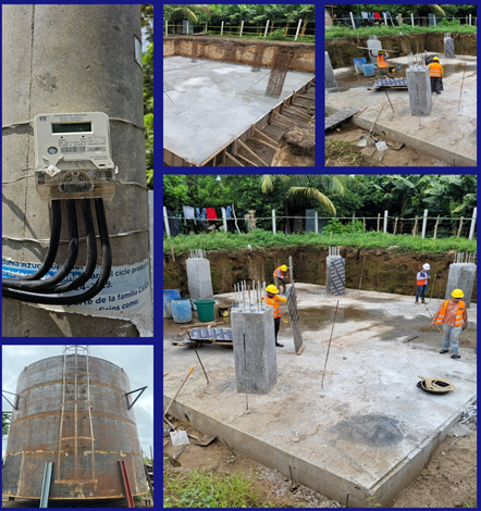 Las obras alcanzan un 74% de avance e incluyen entre otras: Perforación, energización y equipamiento de pozo, obras civiles, tanque de almacenamiento, obras civiles y conexiones domiciliares.