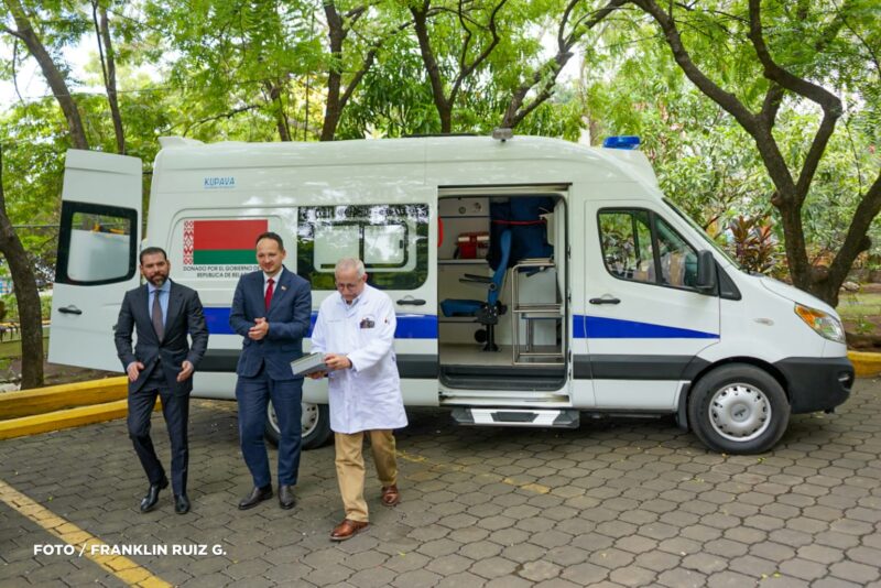 La ambulancia fue entregada simbólicamente por Alexander Egorov, representante especial del presidente Lukashenko para los asuntos con Nicaragua, quien destacó la importancia de elevar el nivel de vida del pueblo nicaragüense mediante la cooperación en salud y educación.