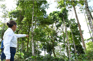 Durante la visita se destacó el compromiso de esta finca de 24 manzanas, donde se aplican prácticas sostenibles mediante sistemas agroforestales, silvopastoriles y de conservación que permiten una producción anual de 1,200 quintales de café. En coordinación con MARENA, en 2024 se establecieron 4,000 plantas de especies forestales como Guapinol, Madero Negro, Macuelizo y Laurel, en el marco de la campaña nacional “Verde, Que Te Quiero Verde”.