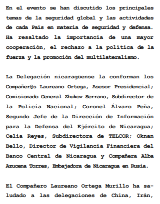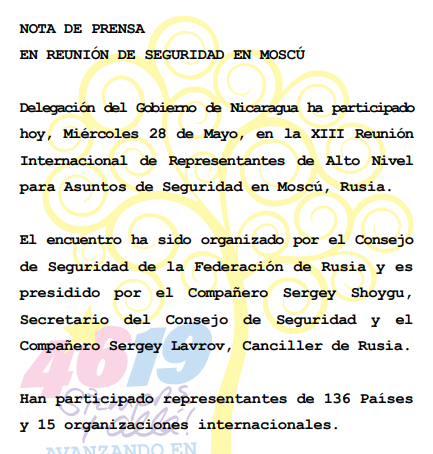 Nicaragua participa en XIII Reunión Internacional de Seguridad en Moscú