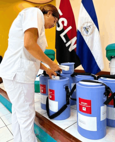 El Gobierno Sandinista, para continuar protegiendo la Vida y Salud de las familias nicaragüenses, contra las enfermedades prevenibles, entregará termos y cámara fría que nos permitirán fortalecer las condiciones de almacenamiento y el traslado de las vacunas a temperaturas adecuadas.
