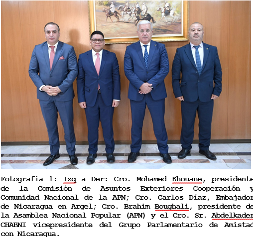 Argelia y Nicaragua avanzan en cooperación parlamentaria y se encuentran en disposición de incrementar las áreas de cooperación como Educación, Cultura y a través del intercambio económico.