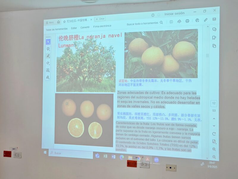 Las Compañeras Guo Jun y Du Yuxia, especialistas del Instituto de Cultivos Comerciales Tropicales y Subtropicales (YAAS), abordaron el contexto general de China y los avances en la producción de cítricos; por parte del INTA se compartió el panorama de la producción de los cultivos de cítricos, así como los logros alcanzados en Nicaragua.