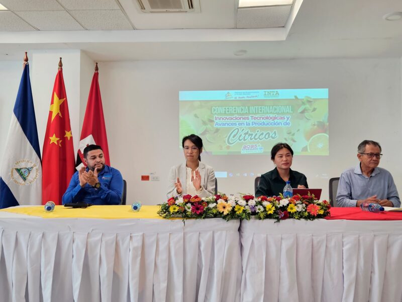 El INTA desarrolló la Conferencia Internacional sobre Innovaciones Tecnológicas y Avances en la Producción de Cítricos en el Auditorio María Castil, con especialistas de China, productores y técnicos conectados a nivel nacional. Las expertas Guo Jun y Du Yuxia (YAAS) expusieron avances en el cultivo de cítricos en su país, mientras el INTA destacó los logros alcanzados en Nicaragua, fortaleciendo el compromiso con la innovación agroproductiva