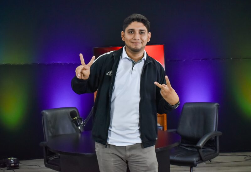 “Primero que nada gracias por la invitación… La verdad es mi primer podcast, me siento un poquito nervioso, pero estoy listo para la conversación”, dice con una sonrisa tímida. Así comienza esta entrevista: no con un experto de redes, sino con un maestro de aula que quiso comprender a sus estudiantes y terminó convirtiéndose en creador de contenido.