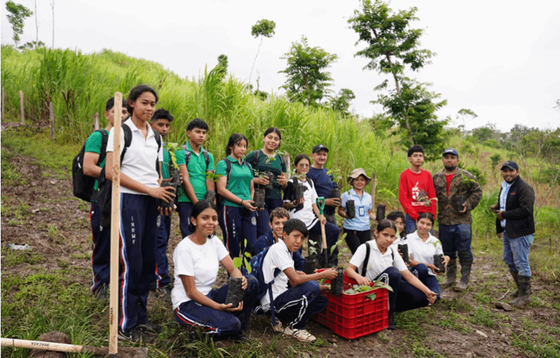 Estudiantes del Instituto Rosa Montoya Flores participaron activamente en la siembra, junto a representantes de la Alcaldía Municipal, el Movimiento Ambientalista Guardabarranco, protagonistas y miembros de la comunidad.