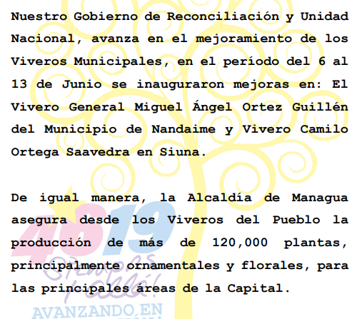 El Gobierno de Reconciliación y Unidad Nacional continúa avanzando en el fortalecimiento de los Viveros Municipales, como parte de la estrategia “Viveros del Pueblo”, con el objetivo de promover la reforestación, el desarrollo sostenible y el abastecimiento de plantas frutales y ornamentales en todo el país.