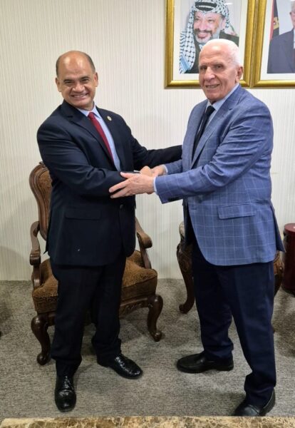 Hoy 16 de Junio, sostuvimos cordial encuentro con el Compañero Azzam Al-Ahmad, Secretario General del Comité Ejecutivo de la Organización para la Liberación de Palestina (OLP), en sus oficinas centrales. Elogiándose las fuertes relaciones entre Palestina y Nicaragua, haciendo memoria de los lazos históricos que unen al Frente Sandinista de liberación Nacional con la Organización para la Liberación de Palestina (OLP).