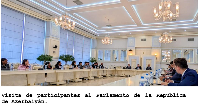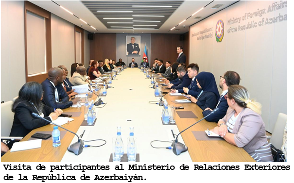 Asimismo, se contó con visitas a Instituciones de Azerbaiyán como el Ministerio de Relaciones Exteriores y el Parlamento e intercambios con oficiales del Gobierno, entre ellos el Sr. Yalchin Rafiyev, Viceministro de Relaciones Exteriores y el Sr. Aykan Hajizada, Portavoz y Jefe del Departamento de Prensa del Ministerio de Relaciones Exteriores.