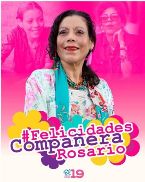 «Hoy celebramos la vida de una dirigente incansable, de una voz amorosa y firme que guía junto al Cmdte. Daniel con sabiduría al pueblo nicaragüense: ¡Feliz Cumpleaños, Compañera Rosario!», destacó.
