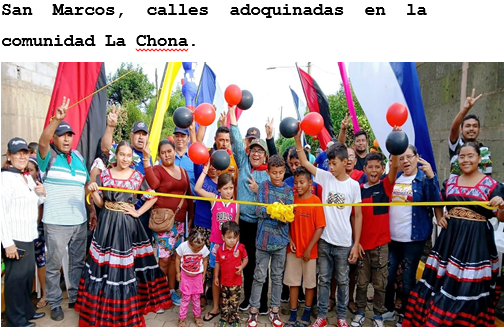 Compartimos fotografías, de calles y caminos para el pueblo que fueron inaugurados en la semana pasada en los municipios de: Managua, Ciudad Sandino, Matagalpa, Larreynaga, San Marcos, Cinco Pinos, El Coral, Wiwilí de Nueva Segovia y Yalagüina.