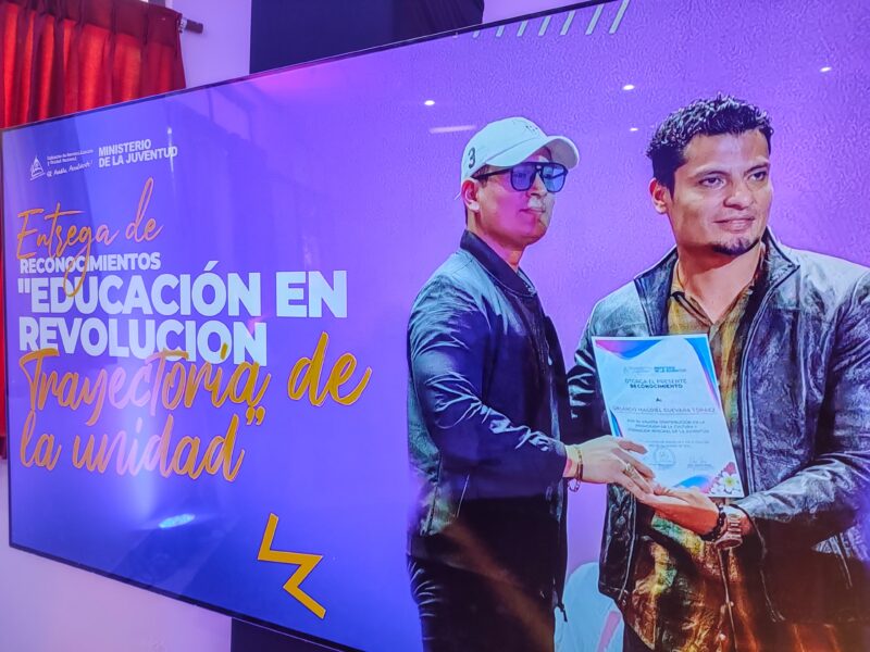 En un emotivo acto realizado en saludo al Día Nacional del Maestro, el Ministerio de la Juventud (MINJUVE) entregó reconocimientos especiales a más de 24 jóvenes docentes y profesionales que han contribuido activamente en la formación de nuevas generaciones desde una perspectiva revolucionaria y solidaria. El evento se tituló “Educación en Revolución, Trayectoria de la Unidad”, destacando la vocación y compromiso de los educadores en el fortalecimiento del modelo educativo nicaragüense.