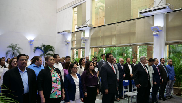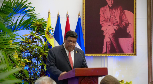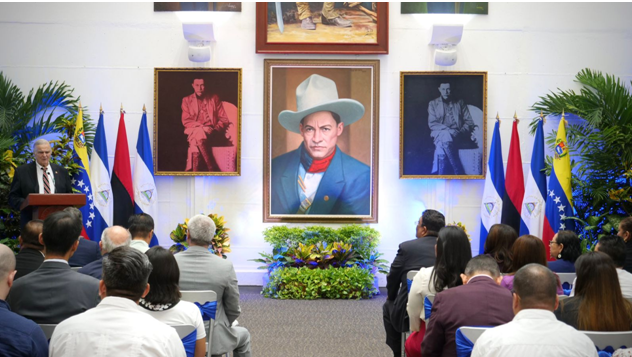 Durante la Ceremonia, el Canciller Valdrack Jaentschke transmitió los Saludos Fraternos y el Cariño de nuestros Co-Presidentes de la República, Comandante Daniel Ortega Saavedra y Compañera Rosario Murillo Zambrana al Hermano Presidente Nicolás Maduros Moros, al Compañero Canciller Yván Gil Pinto, y al Valiente Pueblo y Gobierno de la República Bolivariana de Venezuela.