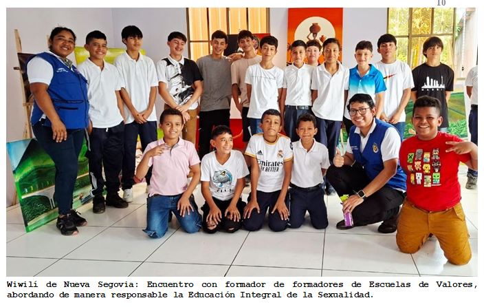De forma simultánea, se realizaron encuentros en las Escuelas de Valores, sesiones de consejería familiar y talleres de Educación Integral de la Sexualidad, con la participación de 438 adolescentes, jóvenes, madres y padres. También se impulsaron acciones para el empoderamiento económico de 99 madres jefas de hogar y jóvenes emprendedores en Boaco, Managua, Masaya, León y Chontales.