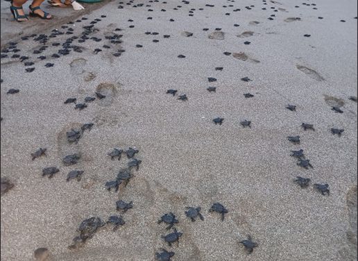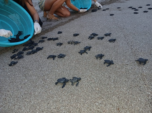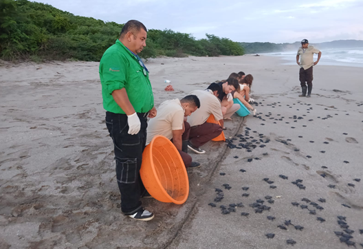 En armonía con el ciclo natural de nuestras tortugas marinas, Guardas de áreas de conservación ambiental del Ministerio del Ambiente y de los Recursos Naturales, MARENA, junto a turistas liberaron 384 tortuguillos de la especie Paslama en el Refugio de Vida Silvestre Río Escalante Chacocente, ubicado en el municipio de Santa Teresa, Carazo.