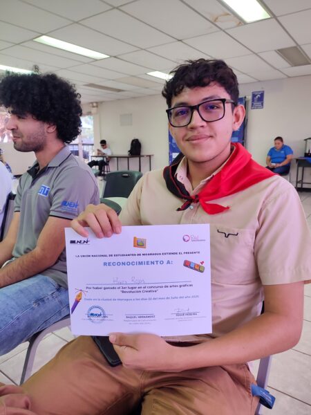 El participante Henry Rojas, quien fue galardonado con el tercer lugar, expresó su satisfacción por el reconocimiento y explicó que su trabajo estuvo basado en la victoria contra la dictadura somocista y el Día Nacional de los Estudiantes. “A través de la imagen, quisimos representar el espíritu revolucionario, porque una imagen puede transmitir más que mil palabras. Este tipo de concursos nos permite fortalecer nuestro aprendizaje y reafirmar nuestro compromiso con la Revolución Sandinista”, señaló el estudiante.