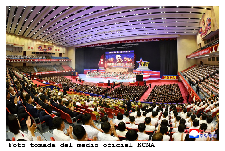 El Evento Conmemorativo del Domingo 27 de Julio, se realizó primeramente en la Casa de los Deportes de Pyongyang y contó con la participación de Dirigentes del Partido del Trabajo de Corea y de Autoridades de Gobierno, Miembros del Cuerpo Diplomático acreditados en la RPD de Corea, Veteranos de la Guerra que aún viven, familiares y representación de Militares, Estudiantes y Trabajadores.