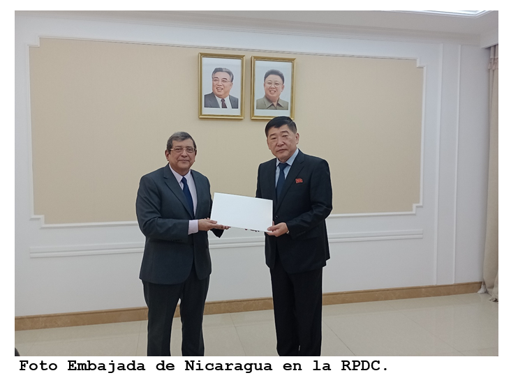Días antes del Evento Conmemorativo, nuestro Embajador en la RPD de Corea, Compañero Manuel Modesto Munguía Martínez, presentó ante la Cancillería de la RPD de Corea, sus Respetos y Saludos, dirigidos al Mariscal Kim Jong Un, en nombre de nuestro Gobierno y de nuestros Líderes, el Comandante Daniel Ortega Saavedra y la Compañera Rosario Murillo Zambrana, siendo recibido por el Vicecanciller Pak Sang Guil y por el Funcionario del Departamento de América de la Cancillería, Compañero Kim Yong Rim.