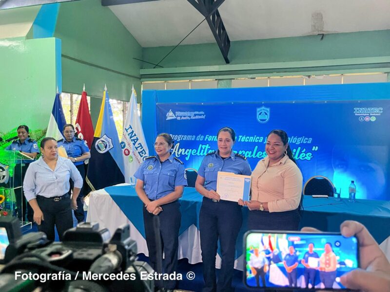 Managua, 29 de julio de 2025 — En el marco del “Julio Victorioso”, el Instituto Nacional Tecnológico (INATEC) y la Policía Nacional realizaron este lunes la ceremonia de graduación de la segunda promoción del programa de formación técnica y tecnológica “Angelita Morales Avilés”, en la que 455 oficiales concluyeron su capacitación en distintas áreas profesionales.