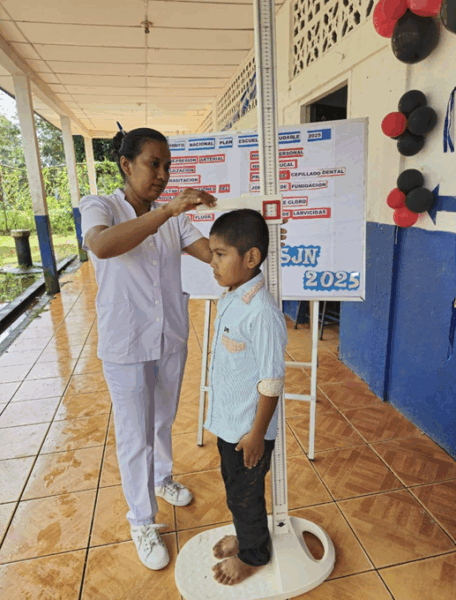 En este periodo realizamos visitas casa a casa y en las Escuelas del País, valorando el estado nutricional de nuestra niñez con base en su peso, talla y edad.