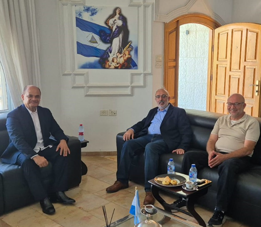“Gaza no se rinde, no se calla, Gaza responde, reescribiendo su Historia”; fueron las Palabras iniciales del Presidente de la Unión de Historiadores de Palestina, Mohamed Mashhadani, quien asistió acompañado del escritor e historiador, Amen Darawshe, en hermanable encuentro con el Embajador Gadiel Arce Mairena, en nuestra sede Diplomática en Palestina hoy 7 de agosto.
