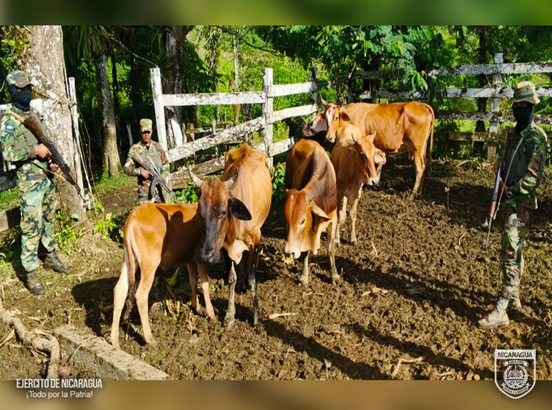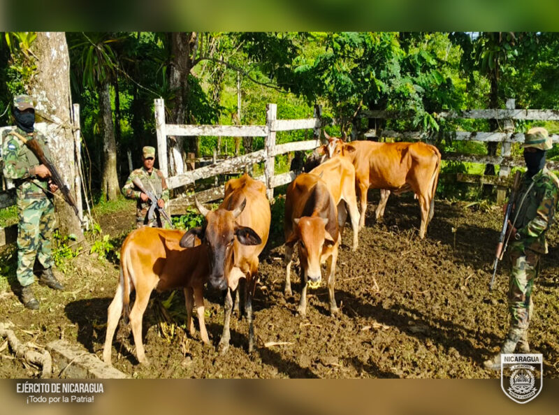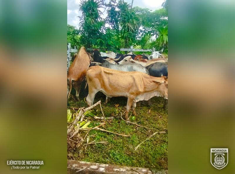 El Ejército de Nicaragua consecuente con el lema de que “Somos el Pueblo mismo uniformado trabajando en su propio beneficio”, el 13 de agosto de 2025, a través de servicio operativo del 5 Comando Militar Regional, en la comunidad Cerro Grande, municipio de El Ayote, Región Autónoma de la Costa Caribe Sur, ocupó 10 semovientes, que eran trasladados de manera ilegal por un sujeto, el que al detectar la presencia de las tropas se dio a la fuga.