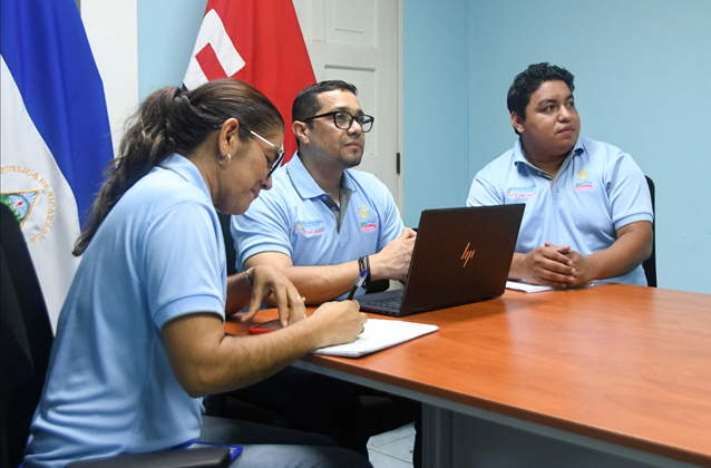 La representación de Nicaragua estuvo a cargo de la Compañera Yamileth Peralta, Especialista Forestal; Compañero Fredder Zarate, Especialista en Biodiversidad y Compañero Jonathan González, Especialista en Cambio Climático.