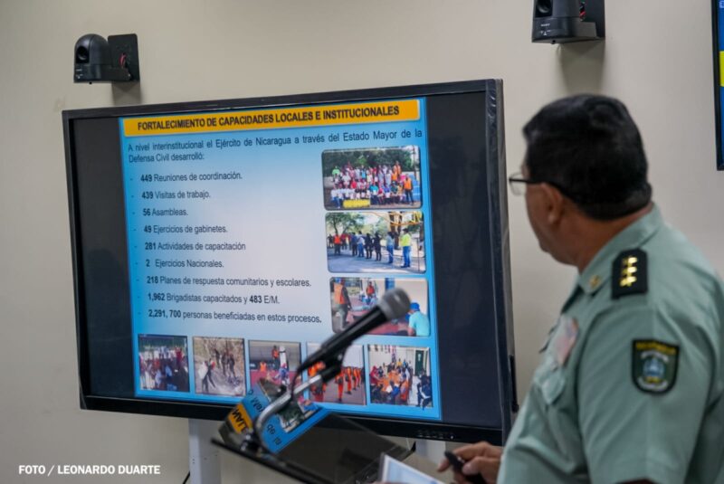 El coronel Corrales recordó que el Ejército de Nicaragua, a través del Centro de Operaciones de Desastres Permanente, realiza un monitoreo constante de la situación climática, sísmica y volcánica, garantizando información oportuna a la población.