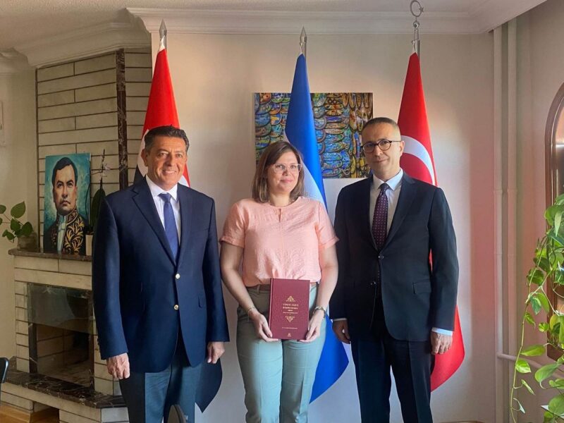 El miércoles 27 de agosto, la Embajada de Nicaragua en Ankara recibió la visita del Prof. Dr. Abdurrahman Aliy, Presidente del Instituto Yunus Emre, y del Prof. Dr. Mehmet Necati, fundador del Centro de Estudios Latinoamericanos de la Universidad de Ankara (LAMER) y actual docente en México. Esta reunión reafirma el compromiso de fortalecer los lazos de amistad y cooperación entre ambos países, y abre nuevas posibilidades para ampliar el intercambio cultural con América Latina, especialmente con Nicaragua.