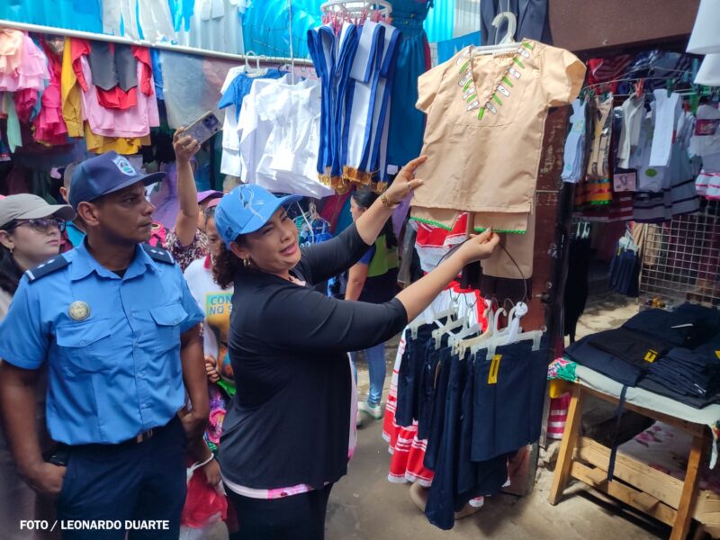 La alcaldesa de Managua, compañera Reyna Rueda, recorrió el Mercado Oriental acompañando a los comerciantes en el inicio de las festividades patrias. La edil destacó el dinamismo que se vive en los ocho mercados de la capital, donde las familias encuentran uniformes, huipiles, trajes típicos y accesorios a precios accesibles.