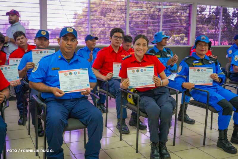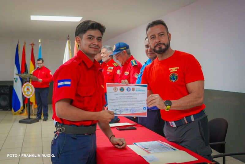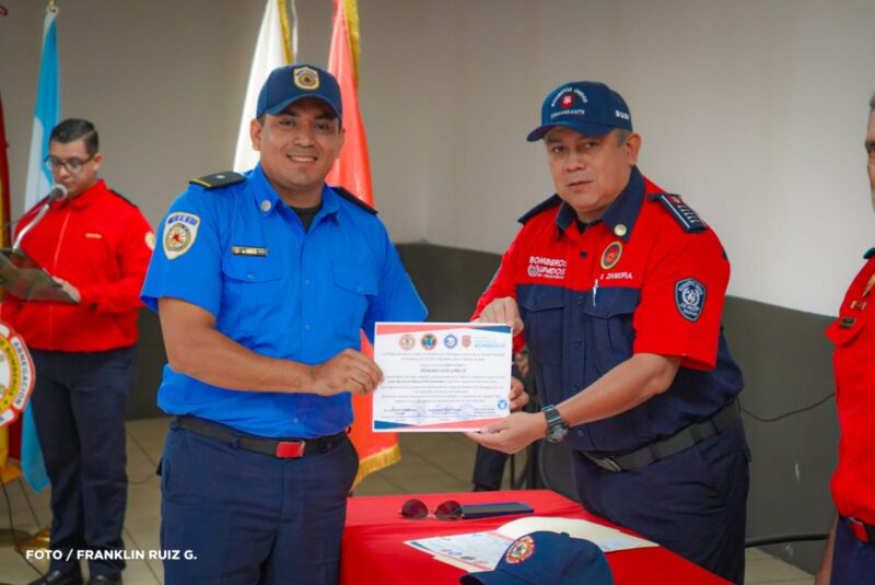 Por su parte, el Comisionado Lenin Quiroz, subdirector general de Bomberos Unidos en Nicaragua expresó que “esta semana ha sido de gran provecho para nuestra fuerza, incluyendo tres compañeras bomberas mujeres que hoy se van a graduar en ese conocimiento. Pienso que la prevención y la mitigación son importantes, esto viene a fortalecer las diferentes vulnerabilidades que tiene nuestro país y vamos a continuar capacitando a nuestro cuerpo de bomberos”.