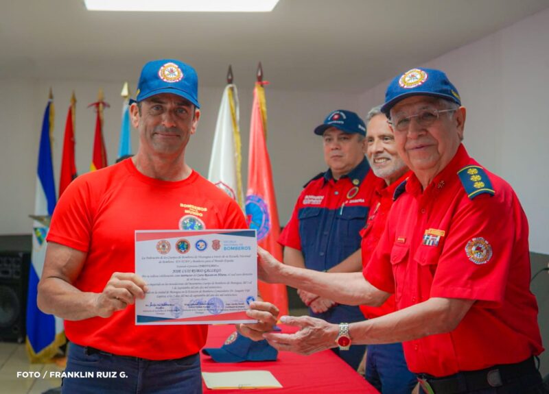 Desde la Escuela del Benemérito Cuerpo de Bomberos en Managua se realizó el acto de clausura del Curso sobre rescate vertical con cuerdas en altura y profundidades impartido por instructores de Bomberos Para El Mundo de España. El curso contó con la participación de 25 bomberos de diferentes delegaciones del país y tuvo una duración de 40 horas, iniciando el pasado primero de septiembre. Francisco Macías, instructor del curso, comentó que “este es el tercer año que venimos a Nicaragua. Este curso ha sido un poco más avanzado y se ha mejorado en movimientos de canilla, rapeles guiados, maniobras bastante complejas para solventar hacia el noventa y cinco por ciento de las situaciones que se puedan encontrar en cualquier lugar”.