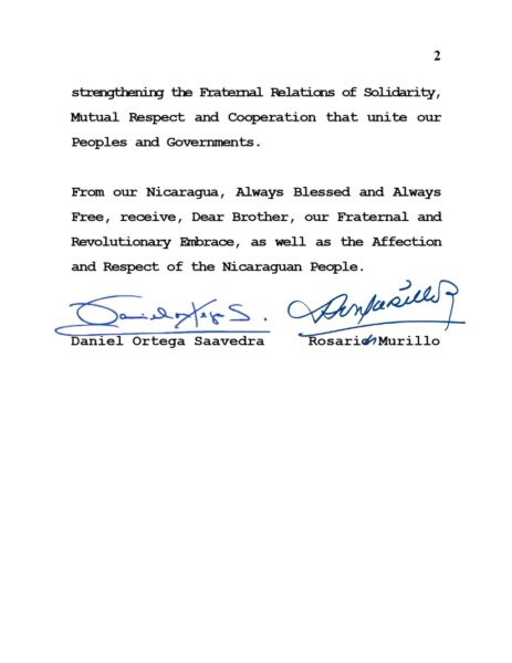 El Copresidente-Comandante Daniel y la Copresidenta Compañera Rosario Murillo enviaron un fraternal Mensaje de Saludo y Felicitación a Su Majestad, el Rey Mswati III, del Reino de Esuatini, en ocasión de conmemorarse el 57 Aniversario de la Independencia de ese Hermano País, expresando los mejores votos de paz, prosperidad y bienestar para su Pueblo y Gobierno.