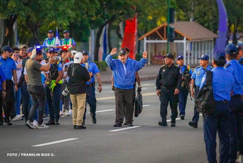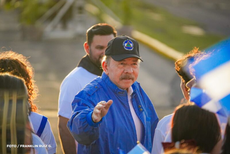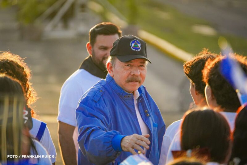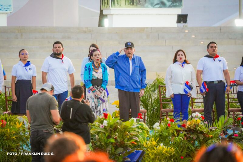 El Comandante Daniel Ortega, Copresidente de Nicaragua, encabezó este 12 de septiembre el acto de recibimiento de la Antorcha Centroamericana de la Libertad, en la Avenida de Bolívar a Chávez, acompañado por estudiantes, docentes y movimientos juveniles.