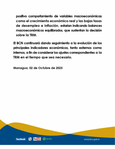 El Banco Central de Nicaragua redujo la Tasa de Referencia Monetaria de 6.25% a 6.00% para apoyar la estabilidad económica, la liquidez financiera y un entorno favorable para el crecimiento, ante una inflación controlada y un contexto internacional más flexible.