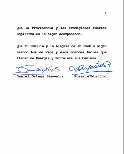 «En este Nuevo Cumpleaños, cuando la Vida nos celebra con todos sus acontecimientos, aplaudimos su Existencia y le deseamos Salud, más Realizaciones y la Dicha de las Victorias que su Pueblo y su Gobierno construyen y defienden, por la Justicia, la Verdad y el Respeto a todos los Derechos», señala el mensaje.