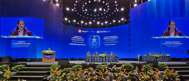 La Ceremonia fue acogida por la República Socialista de Vietnam, en la ciudad de Hanoi, el 25 y 26 de Octubre, bajo el lema “Combatir la Ciberdelincuencia, Compartir responsabilidades, Mirar hacia el Futuro”, presidida por el Presidente de Vietnam – Luong Cuong, y la Copresidencia del Secretario General de la ONU, António Guterres.